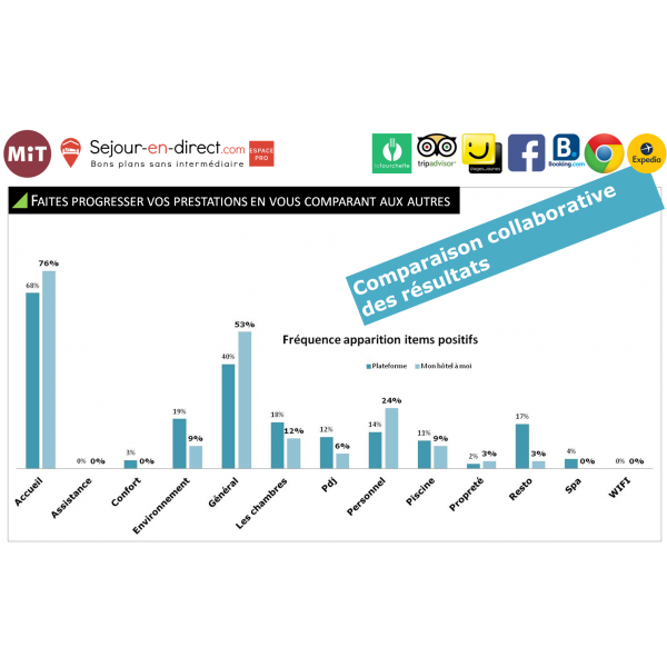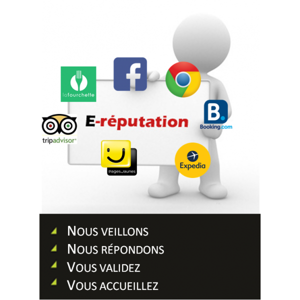 Facebook, Booking.com, Google business, lafourchette.com, pagesjaunes.fr, TripAdvisor...
